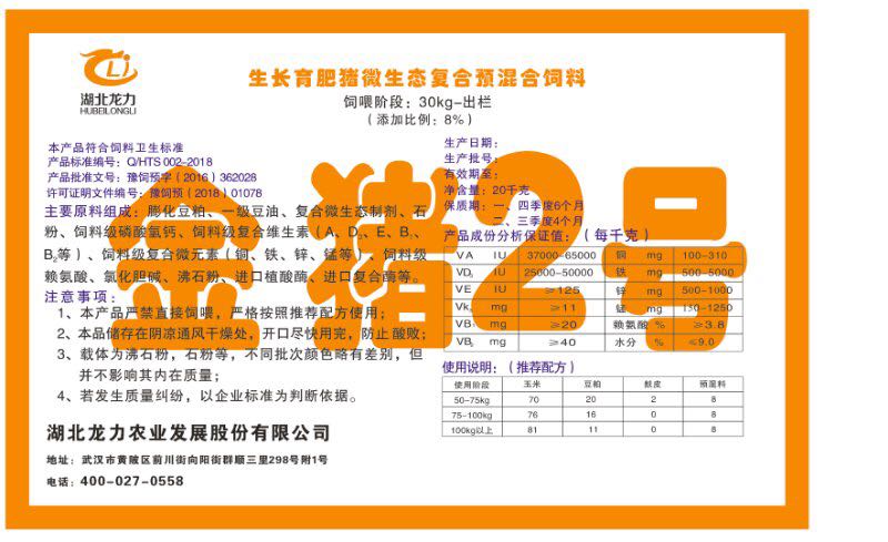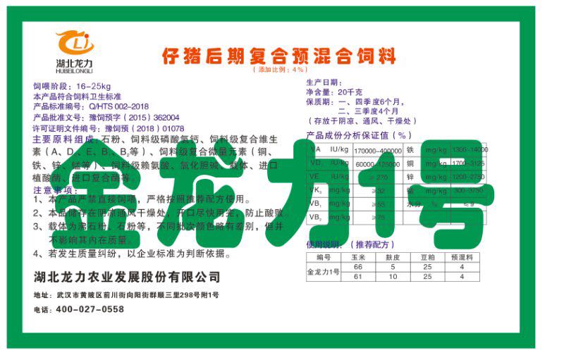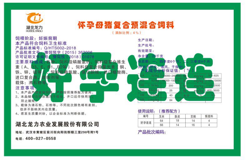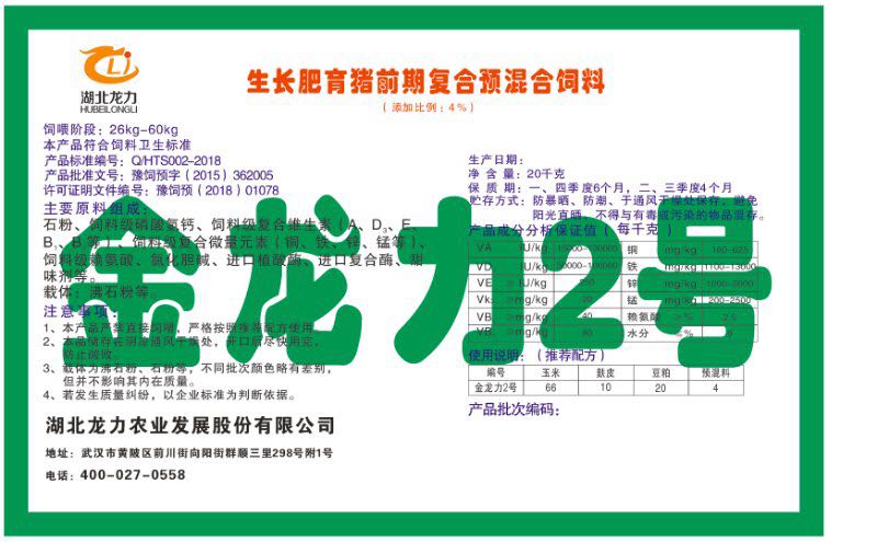 湖北龍力農(nóng)業(yè)發(fā)展股份有限公司坐落于武漢市黃陂區(qū)前川街向陽(yáng)街群順三里298號(hào)附1號(hào)。公司成立于2014年6月,公司自成立以來(lái)把“創(chuàng)全球最大養(yǎng)豬綜合服務(wù)”為企業(yè)愿景。致力于打造教保料品牌”作為公司發(fā)展的明確目標(biāo)。公司一直致力于豬營(yíng)養(yǎng)的研究和開發(fā),積極與國(guó)內(nèi)外高校和科研機(jī)構(gòu)合作,推廣養(yǎng)豬技術(shù)、動(dòng)物營(yíng)養(yǎng)新概念,向世界農(nóng)牧企業(yè)學(xué)習(xí)與合作。公司采用國(guó)內(nèi)先進(jìn)的生產(chǎn)工藝,選擇高精度電子配料秤,高均勻度、無(wú)殘留混合機(jī)等先進(jìn)設(shè)備....